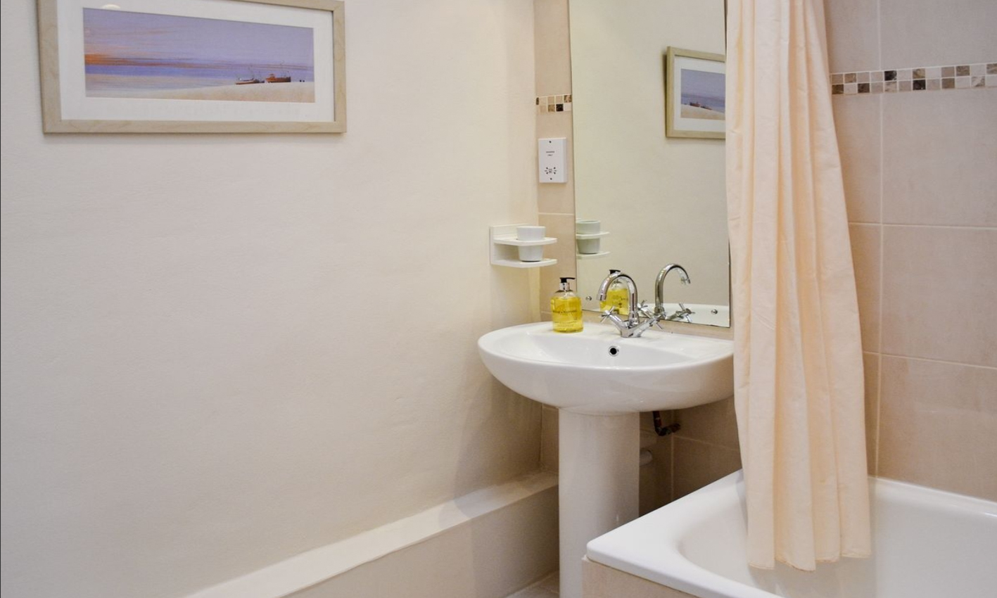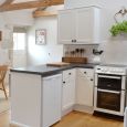 Accomodation: Large open-plan living/dining room with log burner, oak floor, French doors, beamed ceiling and kitchen area. King sized double bedroom. Twin bedroom. Bathroom with over-bath shower and toilet.