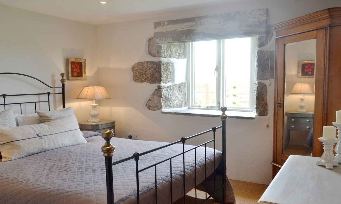 The Stable (TE1) is a traditionally constructed stone barn providing an open-plan living area which has been designed to take in the full height of the building with an exposed beams in a vaulted ceiling; with a Scandinavian log burner, and French doors leading out to its own garden with extensive countryside views. Perfectly placed to enjoy one of the magnificent Cornish sunsets.